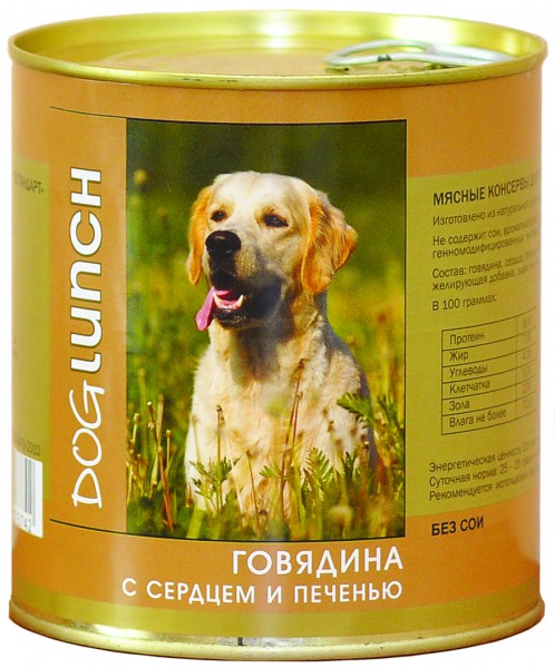 Dog Lunch консервы для собак Говядина/Сердце/Печень в желе