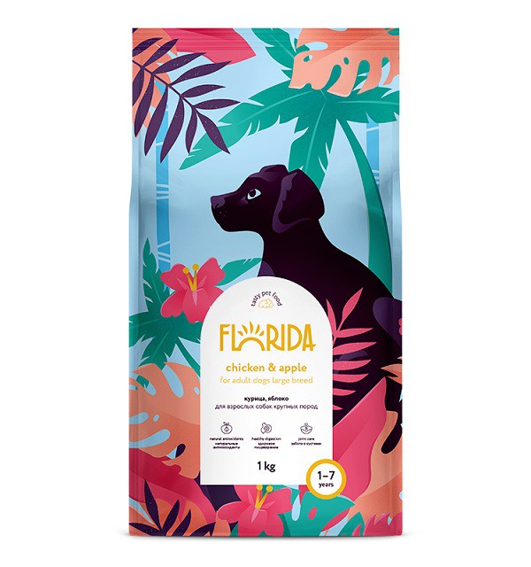 Florida Chicken and Apple - сухой корм супер-премиум-класса с курицей и яблоком взрослых собак крупных пород. Сбалансированное полнорационное питание, способствующее правильному функционированию всего организма и нормализации пищевых процессов. В рационе кормов Florida используется только белок животного происхождения.